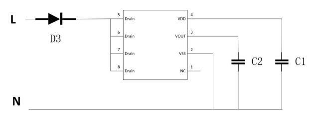 | 4 | VDD | 電源 | 芯片供電管腳,接電容后為VOUT |