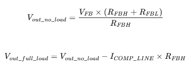 其中,RFBH和RFBL分別為FB外接的上偏電阻和下偏電阻,ICOMP_LINE為滿載時經過FB上偏電阻的輸出線補償電流。