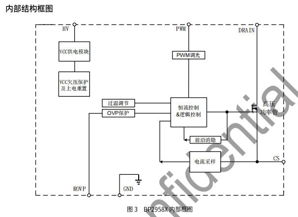 BP2958x 在內部集成 ROVP 電阻分壓采樣,當 OVP 腳電壓 >1.25 V×(1+Rovp/Rcs) 立即關斷,±3 % 精度,比 Zener 方案省 2 顆器件,還能通過 Rovp 任意設定 30~80 V 保護點。