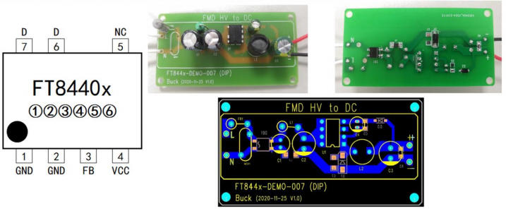 FT8440AD 支持 Buck 與 Buck-Boost 雙拓?fù)洌惶?BOM 只需改 2 個(gè)器件即可切換,方便一張 PCB 兼容 110 V 與 220 V 市場。