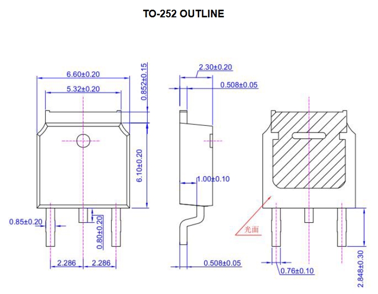 封裝類型:采用TO-252封裝,這是一種常見的表面貼裝封裝,適用于高功率應用。
