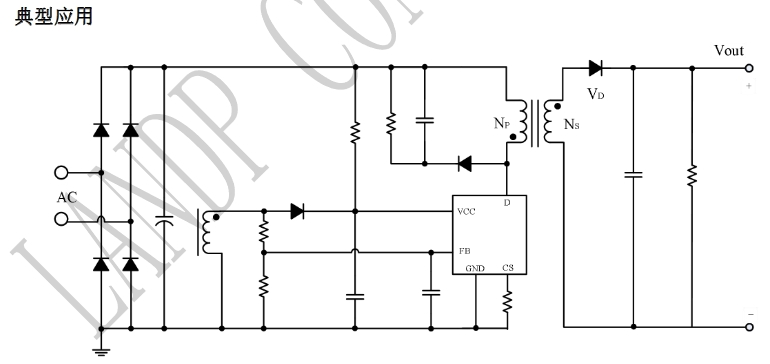 LP3799FAES的應用原理圖展示了如何使用這款芯片構建一個完整的AC-DC開關電源。以下是構建電源的基本步驟和要點: