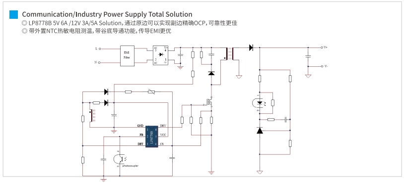 在36W至60W的中等功率范圍內(nèi),SSR控制器如LP8778B和高頻QR控制器如LP8842xxx系列,提供了更高效的電源轉(zhuǎn)換。LP8778B控制器支持5V6A和12V3A的輸出,而LP8842xxx則提供12V5A的輸出。這些控制器適用于中等功率的工業(yè)設(shè)備,如傳感器和執(zhí)行器。