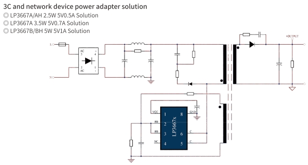 LP3667AH是一款專為隔離型適配器和充電器設計的自供電PSR控制芯片。它具有以下特點: