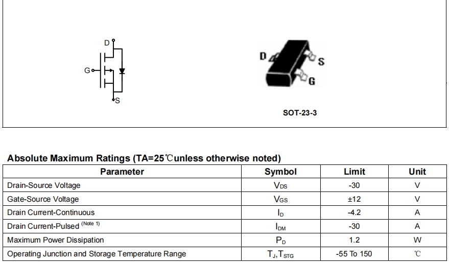 電壓與電流: HN3401和CJ3401均具備-30V的最大漏源電壓(Vds)和-4.2A的最大漏源電流(Ids)。這表明在電壓和電流承受能力上,兩者具有相同的性能標準。